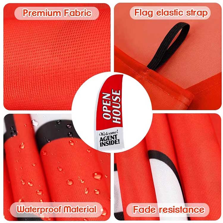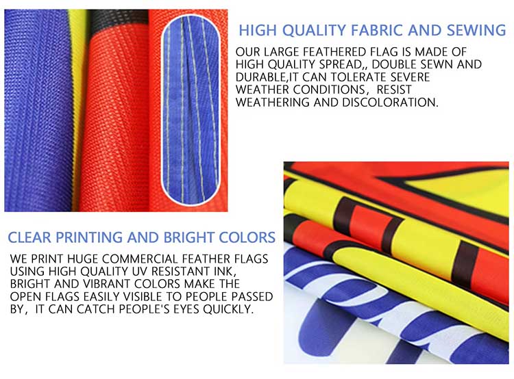 • Durable Material: made with durable warp knitted fabric, the feather flag resists fading and tearing; The pole is constructed of sturdy metal, ensuring it stays firmly in the ground even in windy and rainy weather; The yard signs are built from quality plastic to withstand sun wind and rain ensuring your advertising flag and signage stay visible and secure advertising in all weather conditions. The custom feather flags made of polyester, which colorful and not easily faded, easy to clean, lightweight, durable, easy to fold, double print