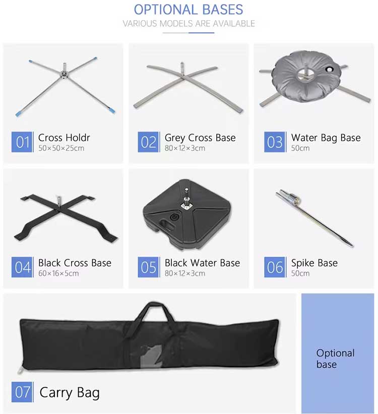 Cross holder, Grey Cross Base, Water Bag Base, Black Metal Base, Black Water Base, Spike Base, Carry Bag